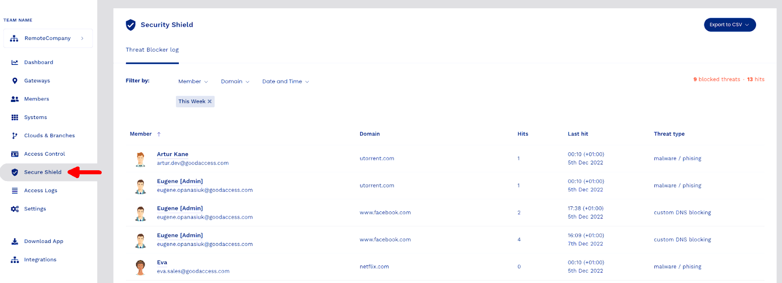 Secure Shield houses Threat Blocker, GoodAccess’ built-in DNS filter that protects you from phishing, botnet C2s, spammers, and other malware.